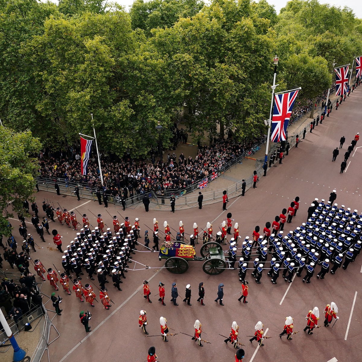 The funeral service will be held on Monday September 19 at 11am local time. 744pm AEST - The Queens coffin begins its procession from Westminster Hall to nearby Westminster Abbey accompanied by 142 members of the Royal Navy King Charles III. For Australians tuning in from home the proceedings will begin on Monday.